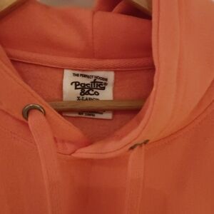 Bright orange hoodie featuring a large navy dog silhouette and text graphic. Cozy casual style for everyday outings. Easy to layer over collars or harnesses. Bold navy print contrasts with vivid orange fabric.