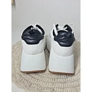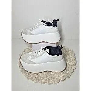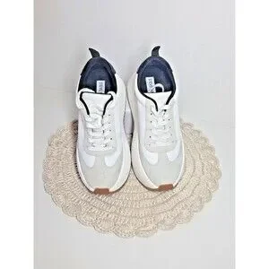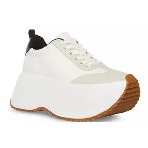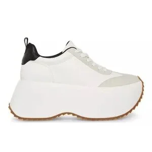 The Steve Madden Girl Women's Platform Chunky Jogger Sneakers in size 6.5M offer a stylish and comfortable option for casual wear. With a low top design, lace-up closure, and chunky platform heel, these sneakers provide an elevated sporty look. The white color and solid pattern make them versatile for various occasions, such as travel, activewear, or workwear. Made with synthetic upper material, and a foam insole, these sneakers are perfect for the summer and spring seasons. The sneakers also feature a round toe shape and a 2-inch heel height for added comfort and style.