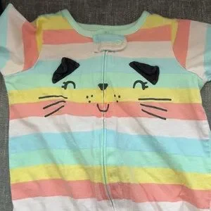 3 month baby footed sleeper pajama bundle. Black and white the plaid with heart is size 3 month brand carters. Fleece and brand new without tags never worn. Has a hood. The other three are Gerber brand size 3-6 months. Good condition.