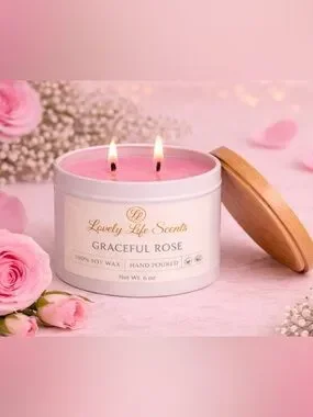 Graceful Rose Hand Poured Double Wick 100% Soy Candle Tin