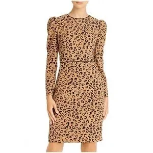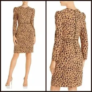 NWT Donna Karan Leopard Print Long-Sleeved Sheath Dress