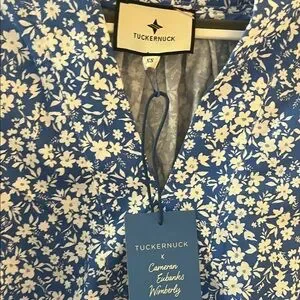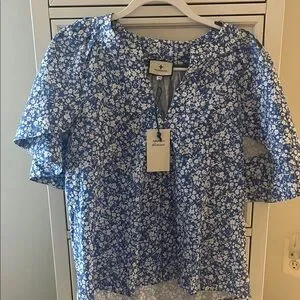 Tuckernuck Blue & White Floral Ruffle-Sleeve Split-Neck Top