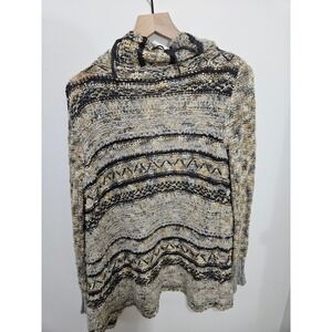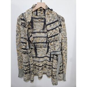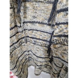 BKE Women Hooded Open Front Cardigan Tassel Knit Sweater Grey Yellow XS