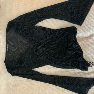 I.AM.GIA Amina Black Sheer Animal Print Lace Up Mini Dress Flare Sleeve Small