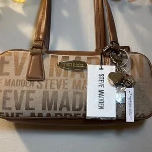 Steve Madden Beige and Brown Logo Shoulder Bag with Charm