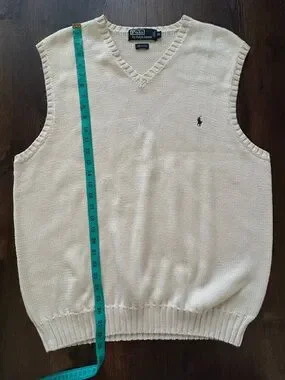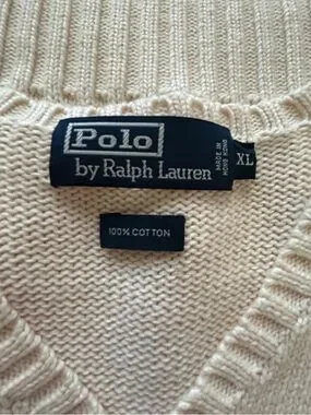 Polo Ralph Lauren Cream Cotton Sweater Vest XL V Neck Preppy Y2K