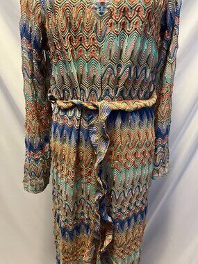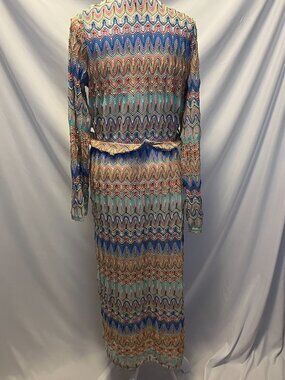 Tags: AKIRA Take Me to Miami set, AKIRA matching set, AKIRA halter top and duster, multicolor shimmer set, gold thread shimmer outfit, Miami vibe outfit, tropical festival outfit, vacation outfit set, colorful halter top, sheer long duster, lightweight duster cardigan, size L/XL fits medium, sold out AKIRA set, statement two piece set, bold colorful outfit, summer fashion set, resort wear outfit, beach trip outfit, brunch outfit set, vibrant shimmery outfit, 100 percent polyester set, Miami style clothing