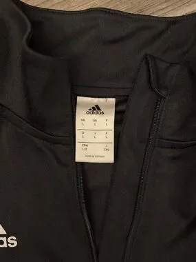 adidas half-zip pullover in solid black. Subtle logo on chest. Smooth performance fabric. Clean, athletic silhouette.