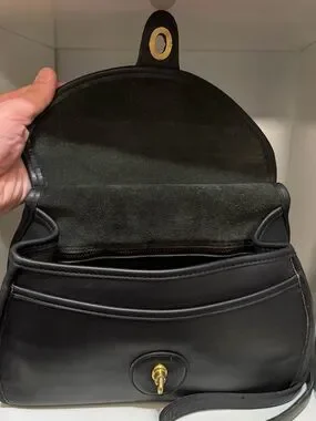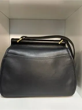 Vintage Coach Logan Bag (#9907) Black Leather Crossbody with Brass Turnlock