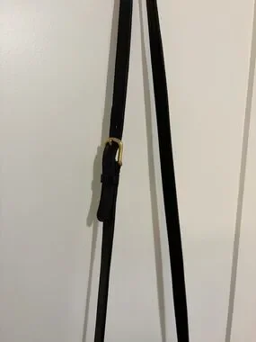 Coach crossbody in smooth black leather. Brass turnlock hardware on front flap. Slim adjustable shoulder strap. Structured silhouette with clean lines. Elegant everyday style.