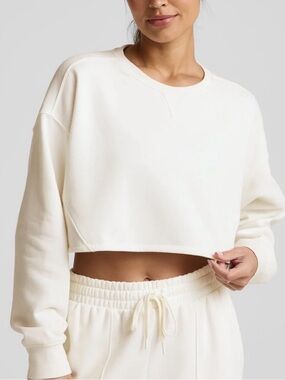 Beyond Yoga LuxeFleece Cropped Crewneck Sweatshirt in Cream Size M