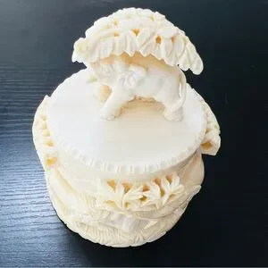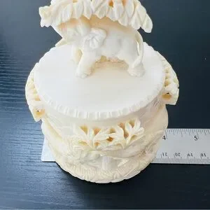 Indian Carved Container Box Animal Motifs and Elephant Finial Signed