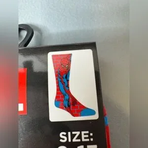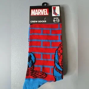 Licensed Marvel crew socks with Spider-Man motif. Bold brick-pattern background. Soft knit for daily wear. Easy to pair with casual outfits.