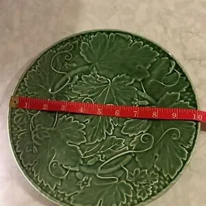 Vintage Bordallo Pinheiro majolica Vine Green 10” dinner platter. Gorgeous Portuguese glazing and such detail. Perfect for display or to start a collection or as a replacement. Good vintage age condition. No chips or cracks