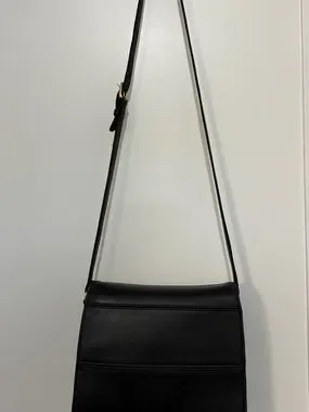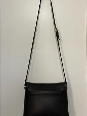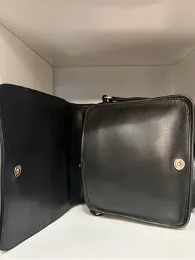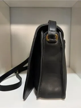 (Rare) The Tribeca Flap bag was only manufactured in 1998. It’s a crossbody bag in smooth black leather with a stitched panel design. It features a leather adjustable strap and a magnetic closure. Subtle embossed Coach logo on front. Clean, refined everyday style.