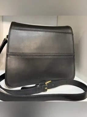 Rare Vintage Coach Tribeca Flap Bag (#9092) Black Leather & Magnetic Closure