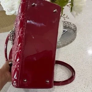 ❤️Dior Red Patent Quilted Lady Dior Satchel with Silver Hardware