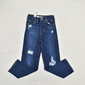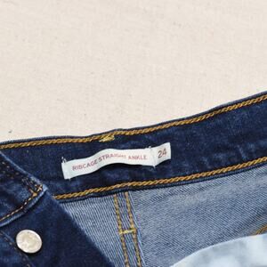 Levi's Women Jeans Cotton Blue Size 24 Ribcage Straight Ankle Denim Button Fly