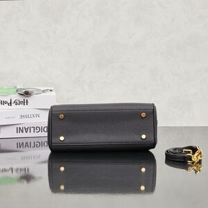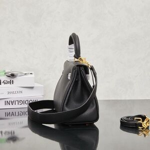 Polished Gold-Tone Hardware – classic gold lock, clochette, and clasps, offering a warm, luxurious contrast to the deep black hue