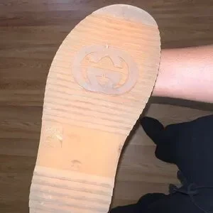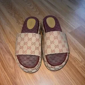 Gucci Beige & Burgundy GG Canvas Platform Slide Sandals