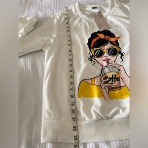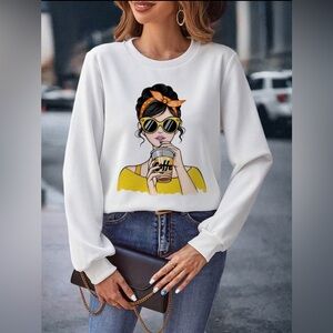 Emery Rose lune Figure Graphic Drop Shoulder sweatshirt,casual,round neck,long sleeve,loose,slightly stretch,knitted fabric, 100% polyester,medium size.