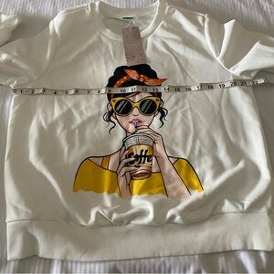 Emery Rose Lune Figure Graphic Sweatshirt Color White Size Medium