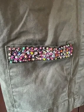 Army green field jacket with beaded pockets