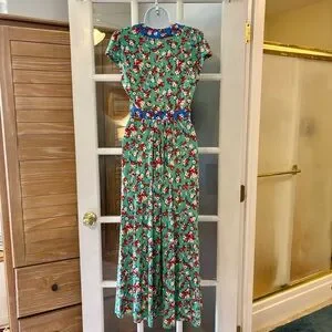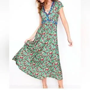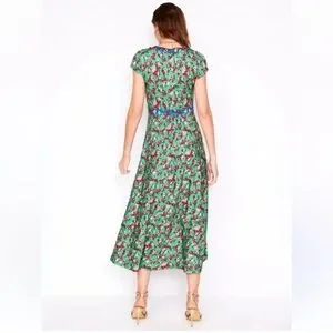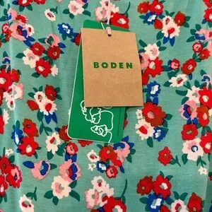Vibrant green floral dress has contrast color neckline and a flattering fit and flare silhouette. Super comfortable jersey for work or play. Viscose/elastane with stretch. Size 6 relaxed fits a standard 6. New with tags.
