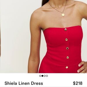 Reformation Shiela Linen Red Strapless mini Dress size 8