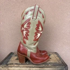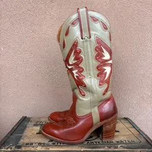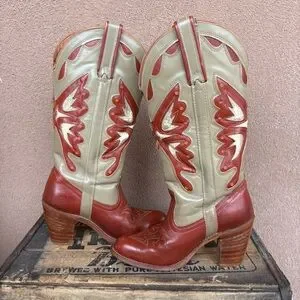 Vintage 70’s Capezio Butterfly Inlay Heeled Cowgirl Boot
