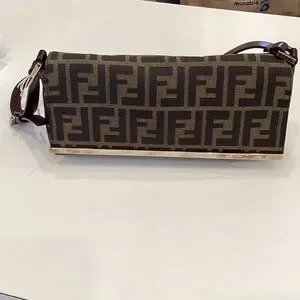 Fendi FF Zucca Canvas Clutch Shoulder Bag in Brown