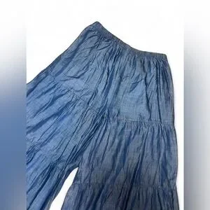 Natural Life NWT Wide Leg Pants XL Blue Chambray Tiered Flowy Boho Coastal