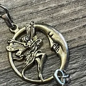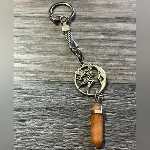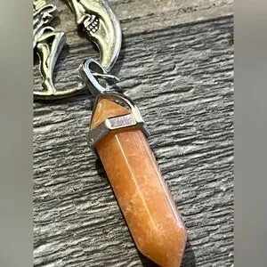 Elegant silver-tone pendant featuring a detailed fairy and crescent moon motif. Includes an orange point stone drop for a boho-chic accent. Lightweight and versatile for everyday or special occasion wear.