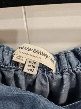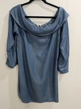 Anthropologie Chambray Ruffle Collar Shift Dress M Blue Lyocell Boho Minimalist