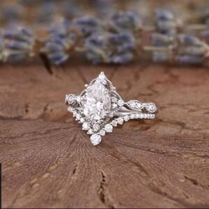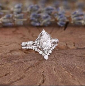 BRAND NEW ** Elegant 2 PC Silver Marquise Cut White Topaz Ring