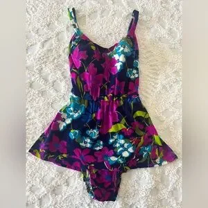 Classic vintage one-piece swimsuit in bold pink and blue floral print. Supportive built-in structure and adjustable straps for a secure, flattering fit. Soft stretch fabric contours the body and keeps color vibrant. Perfect for pool or beach days when you want feminine, timeless style.