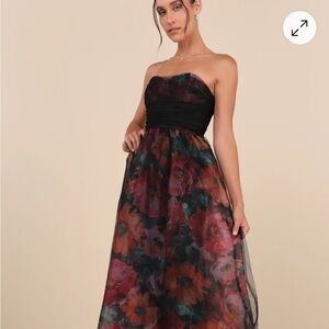 Splendidly Yours Pink Floral Organza Mesh Strapless Midi Dress
