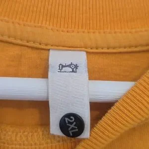 Official Travis Scott graphic tee with central butterfly skull motif. Orange base with black tie-dye streaks. Crew neck short sleeve design. Bold streetwear statement piece. size is 2xl