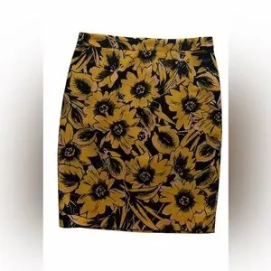 NWT J. Crew Floral Yellow Pencil Skirt Size 4