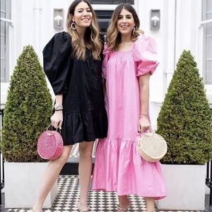 Gorgeous short, A-line dress in a crisp organic cotton weave with smocking at the top. Square neckline with concealed elastication to keep the dress in place. Wide, half-length sleeves with a voluminous puff at the shoulders and narrow elastication at the hems. Gathered seam at the hem and a flared skirt. Unlined.