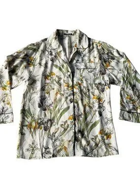 Alexander McQueen Woman's Sz 38 US Sz 2 Meadow Floral Print 100% Silk Pajama Top