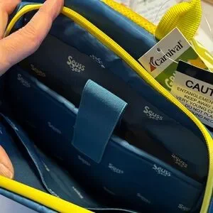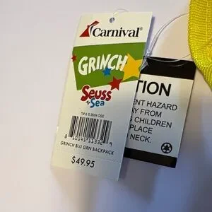 Delight your child with this Seuss Grinch backpack in vibrant blue and yellow. Perfect for school or travel, it features a playful Grinch design that kids will love. Exclusive from Carnival Cruise lines. Tote 45