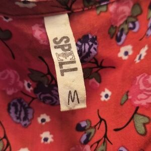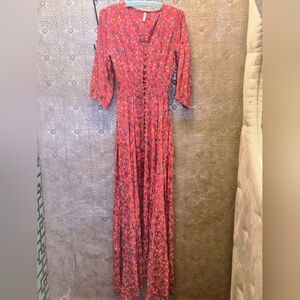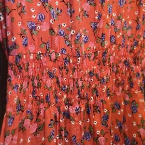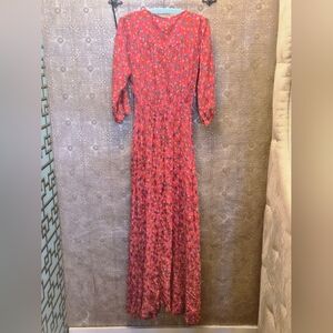 VINTAGE Boho Lightweight red floral long dress. Flowy design for easy layering over swimwear. Ties at the waist for a customizable fit. Perfect collectors item for beach days and poolside lounging.