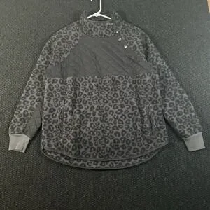 Abercrombie & Fitch Womens XL Gray Leopard Fleece Snap Neck Pullover M78