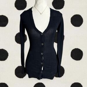 Guess Los Angeles Vintage Black Cardigan Super Fitted Slimming Button Down Size XS