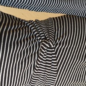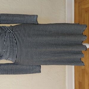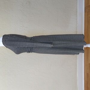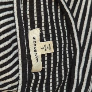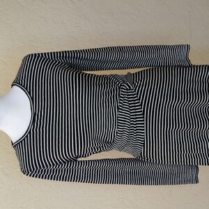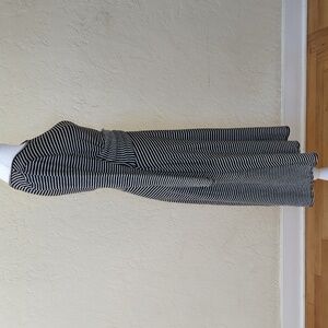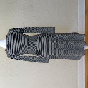 Max Studio long sleeve dress with a flattering twist detail at the waist and black/white stripes. Features a crew neckline, fit and flare silhouette, and textured knit fabric that stretches. Midi length. Very versatile piece -- wear it to the office, brunch, cocktail party, or just about any event! Size Small.