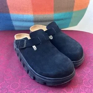 Great shape! The ultimate comfort wearing Birkenstock® Papillio Boston Chunky Clog! Experience unmatched support with a suede upper and adjustable strap, while the contoured cork-latex footbed molds to your foot for custom support. 38 narrow