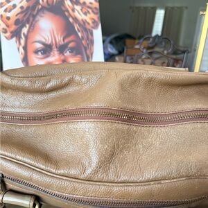 Burberry Tan Leather Satchel with Scarf Accent