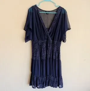 Torrid Navy Blue Lace Inset Chiffon Mini Dress