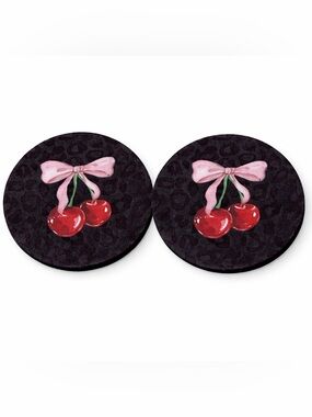 Pink Bow Cherry Car Coasters